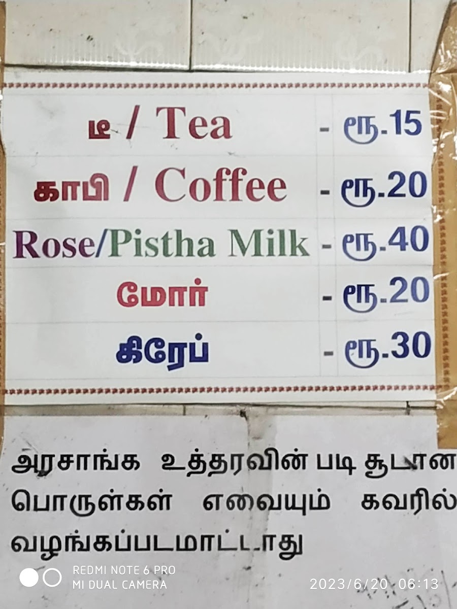 This cozy café offers a menu that truly caters to the senses. Dive into their South Indian Filter Coffee, which is prepared with a delicate mix of cow or buffalo milk, bringing a rich aroma and comforting warmth to every sip. Customers rave about the Special Dum Tea, made with the finest ingredients that create a flavorful experience that you won't find in your average tea shop. For something unique, try the Sukku Coffee, a special blend perfect for those looking to embrace the traditional flavors of Tamil Nadu.
